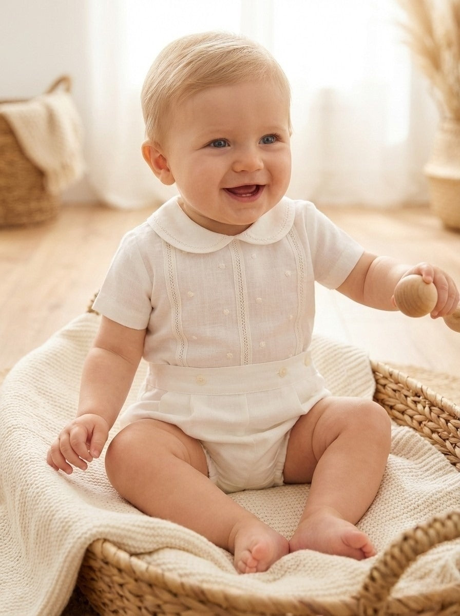 Berniukų krikšto kostiumėlis kreminės baltos spalvos