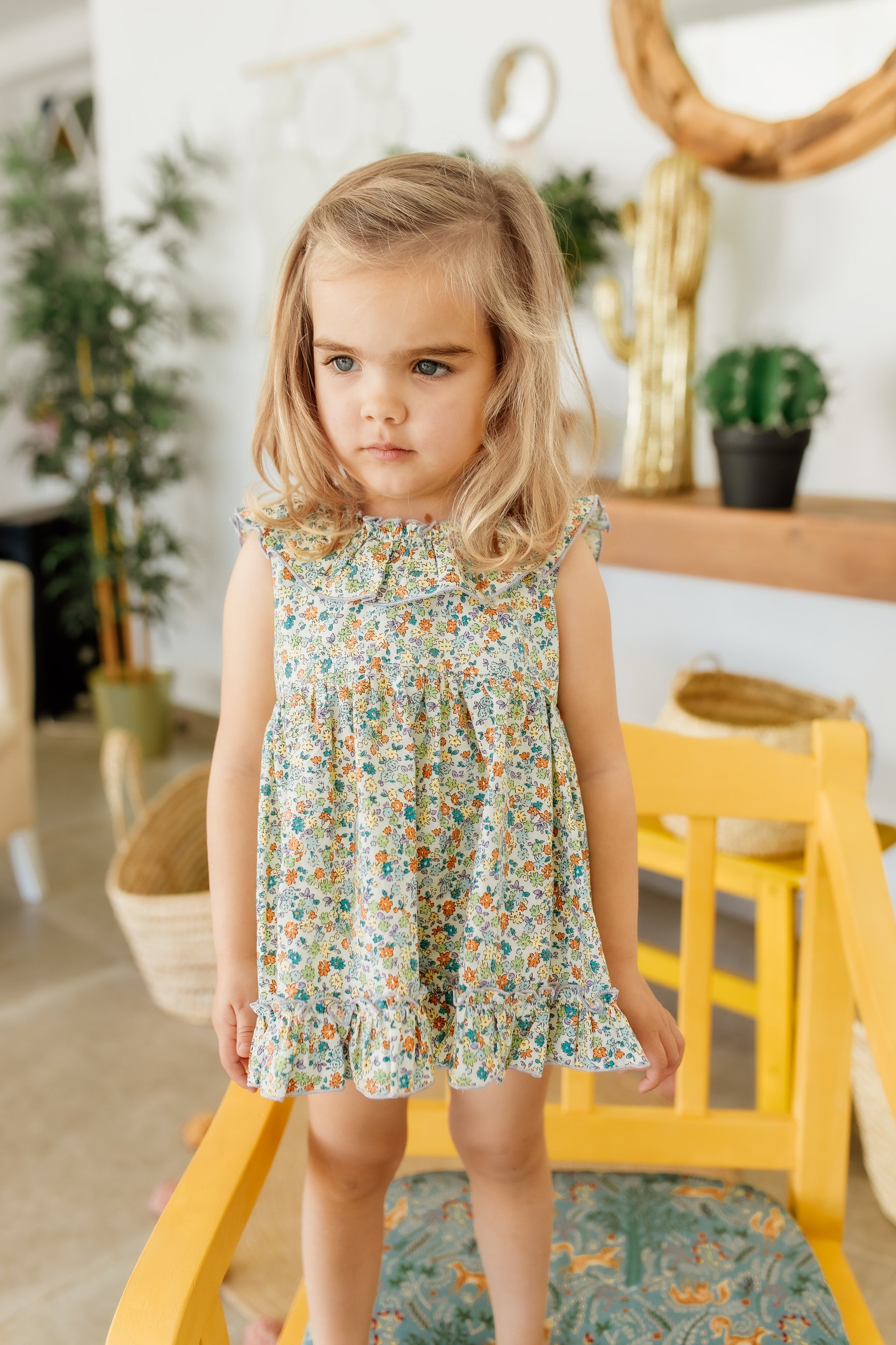 Linksma ir spalvinga vasarinė suknelė mergaitėms, puošta įvairiaspalvėmis gėlytėmis – tikras šiltų dienų džiaugsmas! Švelnus, kvėpuojantis audinys užtikrina patogumą visą dieną, o spalvingas raštas įkvepia gerą nuotaiką ir žaismingumą. Suknelės kirpimas nevaržo judesių, tad mažoji galės nevaržomai žaisti ir šėlti. Tinka tiek kasdienai, tiek išvykoms ar šventėms!