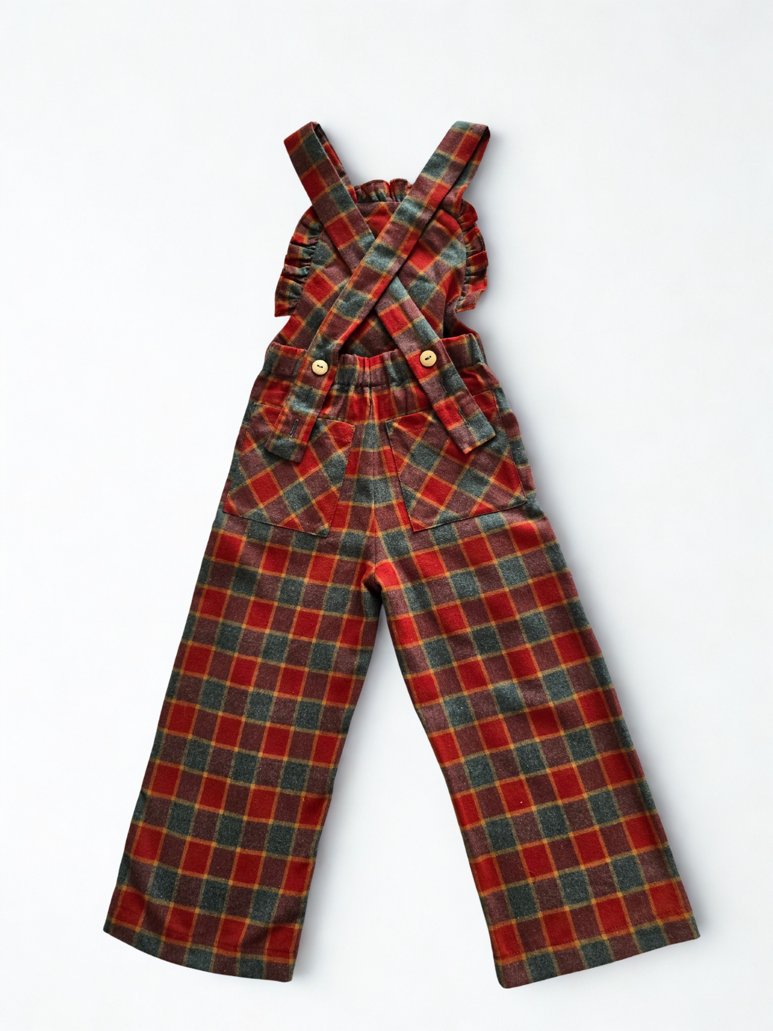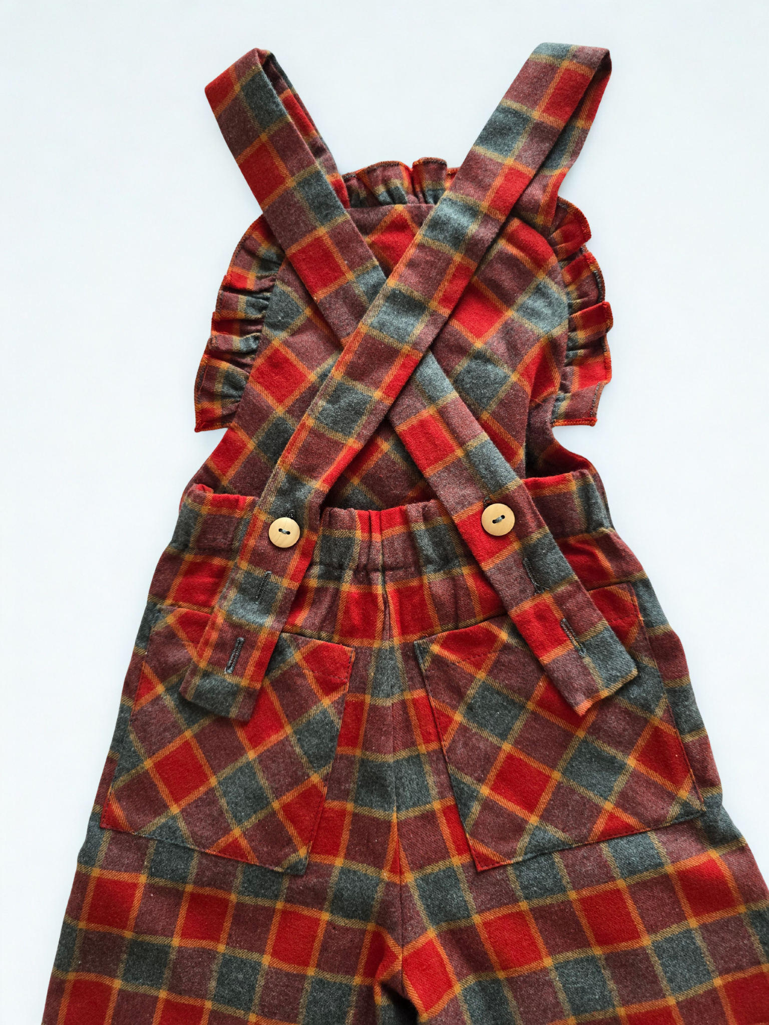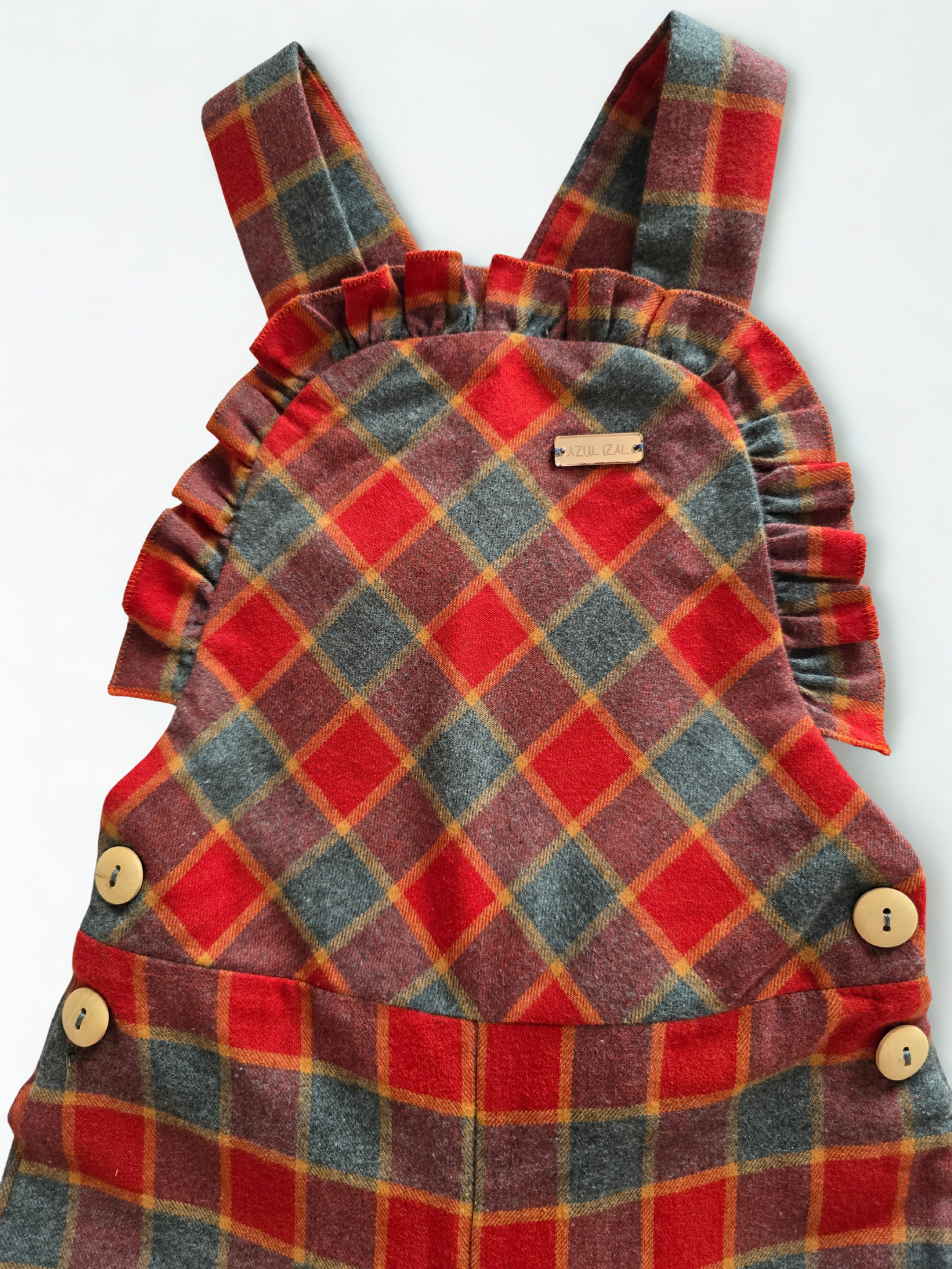 Šis kombinezonas pasiūtas iš švelnaus ir šilto 100% medvilnės audinio su languotu raštu žemės, rusvos ir pilkos spalvų tonais. Tai patogus ir ilgalaikis drabužis, kuris išlaiko formą ir puikiai atrodo dėvint.